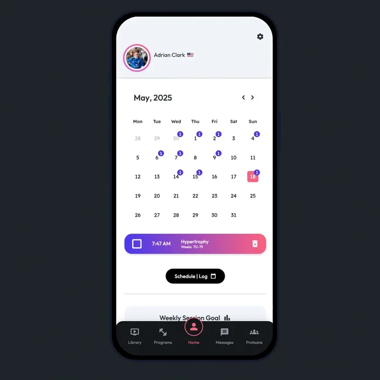 Stay consistent and accountable with our smart training calendar, where you can schedule your weekly sessions, mark workouts as completed, and receive personalized push notifications to keep your progress on track.